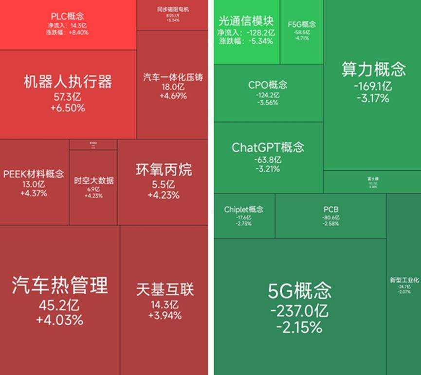 9月8日A股三大指数涨跌不一,截至收盘,沪指涨0.38%报3826.84点,深成指涨0.61%报12666.84点,创业板指跌0.84%报2933.25点。从板块行情上来看,今日表现较好的有PLC概念、机器人执行器和PEEK材料概念,而光通信模块、算力概念和5G概念等板块下跌。