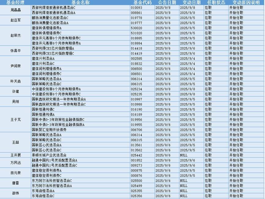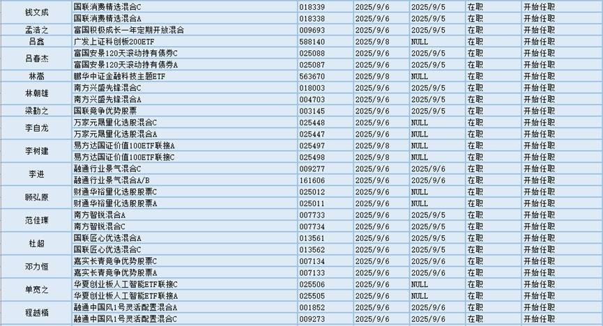 新基金经理上任方面,融通基金万民远现任基金资产总规模为56.28亿元,管理过的基金都为混合型基金,任职期间回报最高的产品是融通健康产业灵活配置混合A/B(000727),为混合型基金,在任职的9年又15天时间内获得158.96%的回报,至今仍在管理该基金。新上任融通中国风1号灵活配置混合A、融通中国风1号灵活配置混合C这两只基金产品的基金经理。