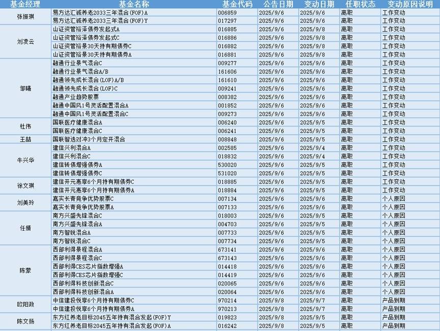 根据巨灵统计的数据显示,近30天(8.9-9.8)共有593只基金产品的基金经理发生离职变动。其中今天(9.8)有38只基金产品发布基金经理离职公告,从变动原因上来看,有7位基金经理是由于工作变动而从管理的22只基金产品中离职。有3位基金经理是由于个人原因而从管理的12只基金产品中离职。有2位基金经理是由于产品到期而从管理的4只基金产品中离职。